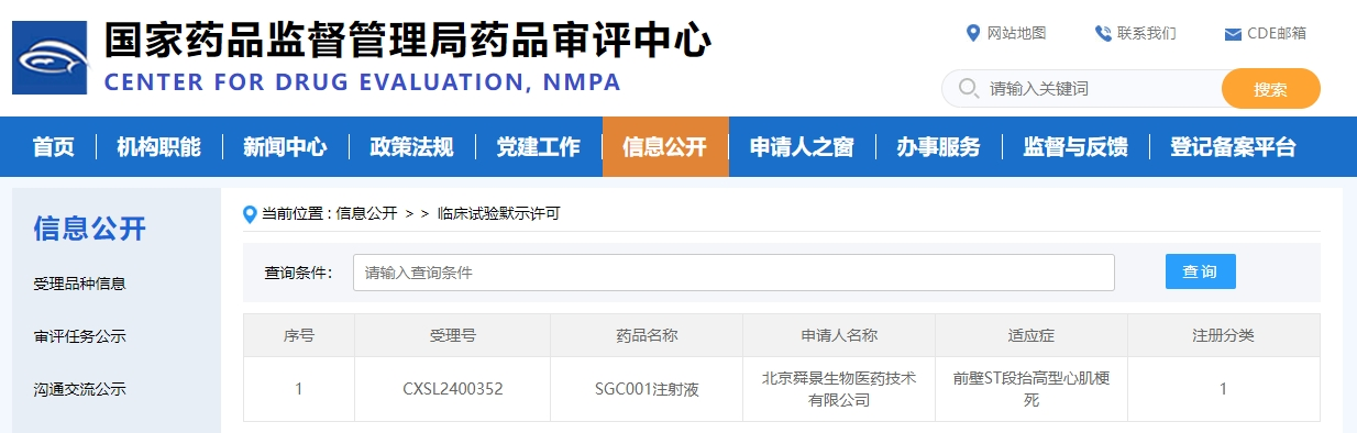 2024年08月05日,由熱景生物(SH.688068)孵化的創(chuàng)新藥公司北京舜景生物醫(yī)藥技術(shù)有限公司(以下簡稱舜景醫(yī)藥)研制的全球首款創(chuàng)新藥SGC001注射液成功獲得國家藥品監(jiān)督管理局藥品審評中心臨床試驗?zāi)驹S可。這是繼2024年05月22日該產(chǎn)品獲得美國FDA臨床試驗(IND)許可之后又一里程碑事件。