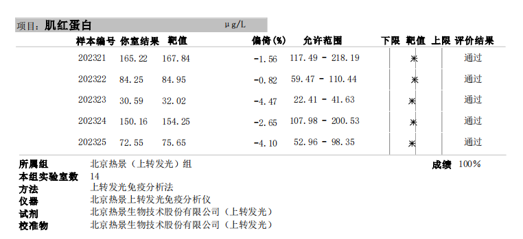 心肌標(biāo)志物室間質(zhì)評(píng)成績單(UPT、CLIA平臺(tái))