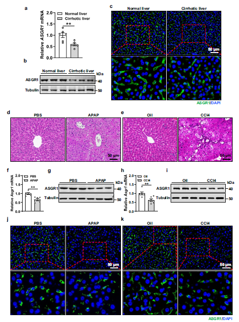 圖:肝硬化患者和肝損傷小鼠中肝臟 ASGR1 下調(diào)