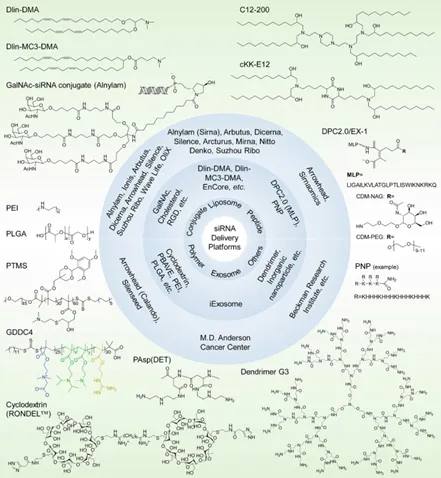 圖注:經(jīng)過臨床前和臨床評估的siRNA遞送平臺