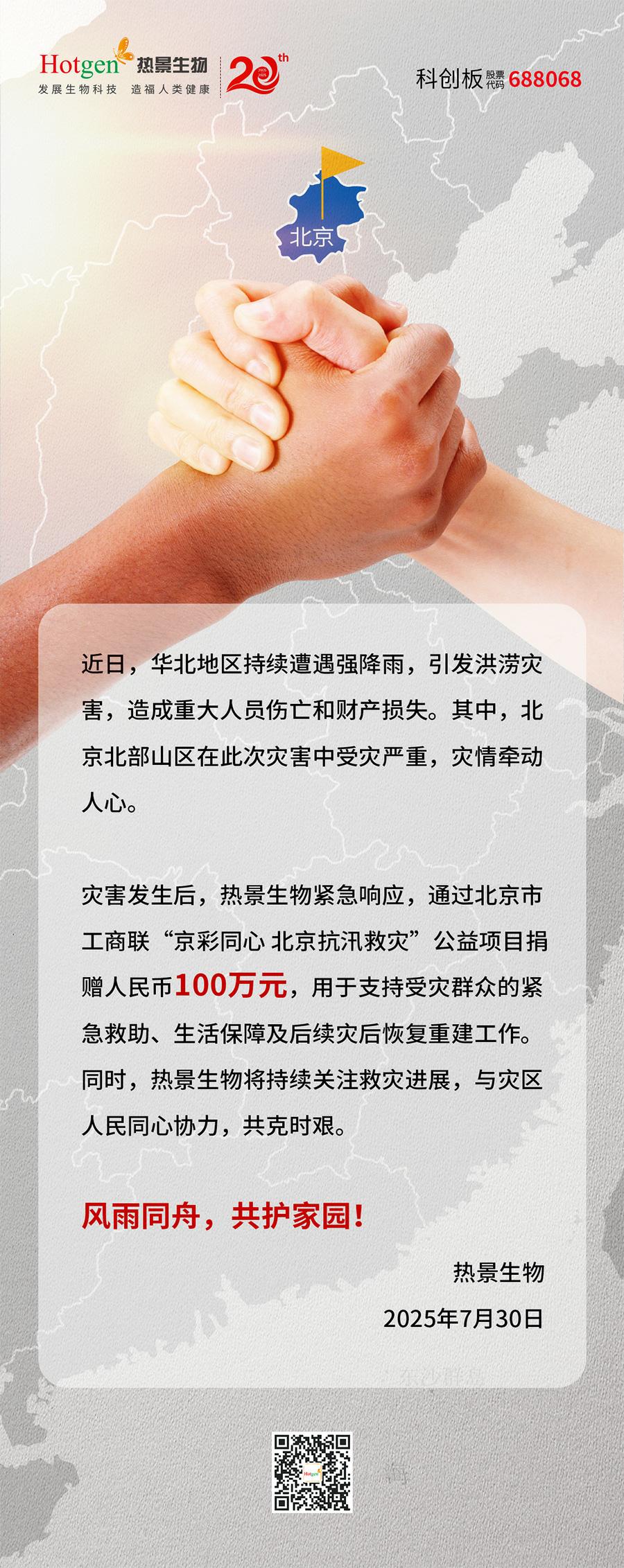 風雨同舟|熱景生物捐贈100萬元,馳援強降雨救災工作