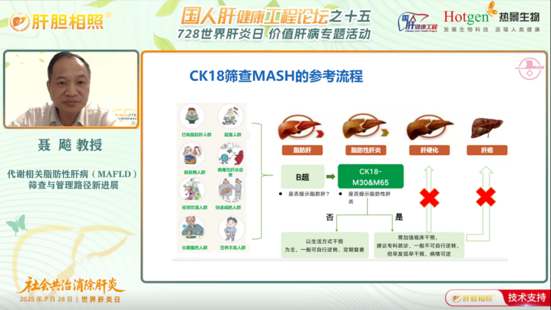 2025年7月28日是第15個世界肝炎日,今年我國的宣傳主題是“社會共治,消除肝炎”。在世界肝炎日之際,由熱景生物攜手肝膽相照平臺聯(lián)合舉辦的“國人肝健康工程論壇”系列活動再度啟程。本次直播以“以價值醫(yī)療驅(qū)動肝病全過程管理新實踐”為主題,圍繞價值醫(yī)療與肝病全過程管理核心邏輯,匯聚國內(nèi)肝病領(lǐng)域頂尖專家,深入探討肝癌早篩體系優(yōu)化、代謝相關(guān)脂肪性肝?。∕AFLD)精準管理、慢性乙肝臨床治愈突破等關(guān)鍵議題,為臨床實踐提供前沿技術(shù)支撐與全周期解決方案。