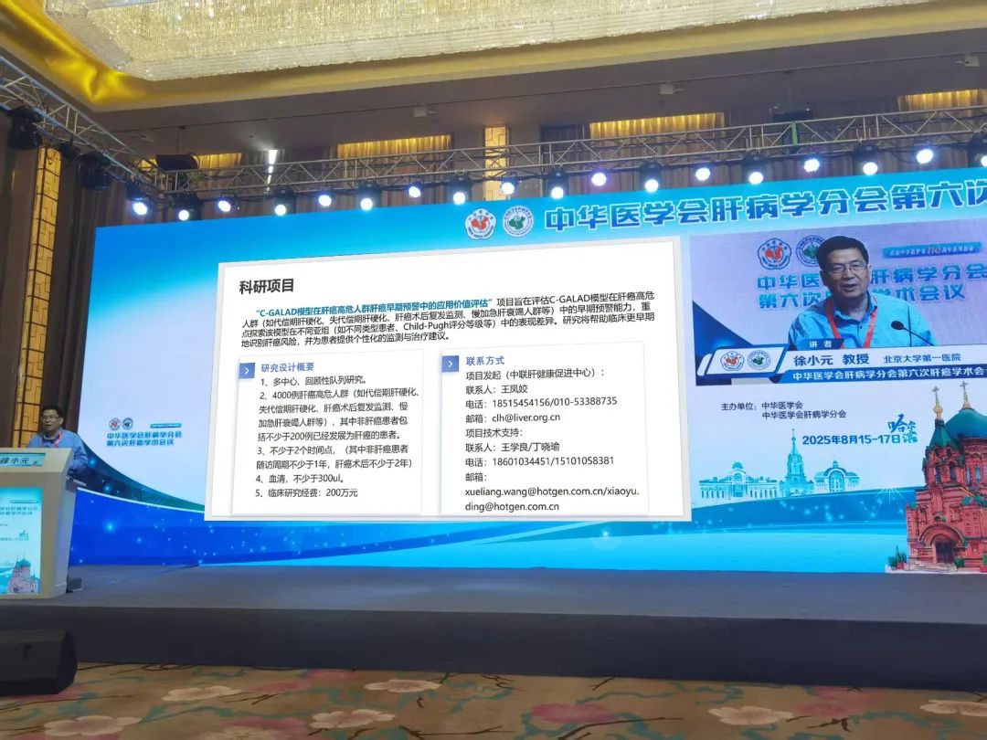 ? “揭榜掛帥”助力肝癌早篩研究:為加速肝癌早期預(yù)警技術(shù)的臨床轉(zhuǎn)化與精準(zhǔn)應(yīng)用,徐小元教授在會(huì)上重磅發(fā)布“C-GALAD模型預(yù)警肝癌風(fēng)險(xiǎn)”揭榜掛帥科研項(xiàng)目。該項(xiàng)目投入200萬(wàn)元科研經(jīng)費(fèi),面向全國(guó)招募具備肝癌高危隊(duì)列資源的醫(yī)院或研究機(jī)構(gòu),合作開(kāi)展多中心、大樣本量(4000例)的回顧性研究。研究旨在深入評(píng)估C-GALAD模型(整合AFP、AFP-L3%、DCP及年齡、性別)在不同類(lèi)型肝癌高危人群(如肝硬化、肝癌術(shù)后、肝衰竭等)中的早期預(yù)警效能及其亞組表現(xiàn)差異,研究將幫助臨床更早期地識(shí)別肝癌風(fēng)險(xiǎn),并為患者提供個(gè)性化的監(jiān)測(cè)與治療建議。