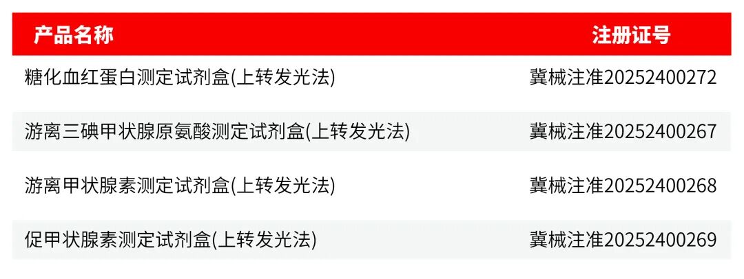 近日,熱景生物基于上轉(zhuǎn)發(fā)光(UPT)技術(shù)的 4 項(xiàng)醫(yī)療器械產(chǎn)品,成功拿下國家藥監(jiān)局《醫(yī)療器械注冊(cè)證》!此次獲批的甲功三項(xiàng)(FT3、FT4、TSH)與糖化血紅蛋白檢測(cè)項(xiàng)目,不僅是公司技術(shù)實(shí)力的權(quán)威認(rèn)證,更將為臨床診療與慢性病管理帶來便捷新選擇。