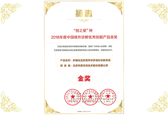 創(chuàng)之星杯2018年度中國體外診斷優(yōu)秀創(chuàng)新產(chǎn)品金獎